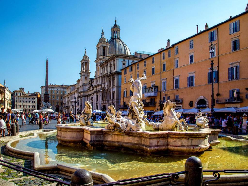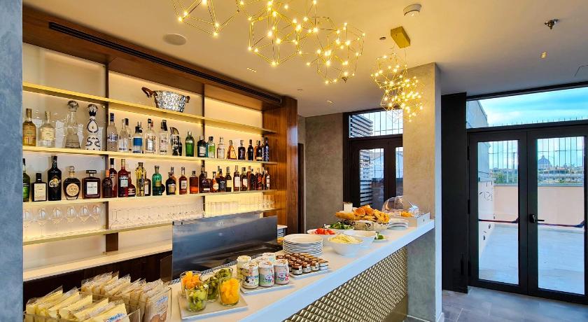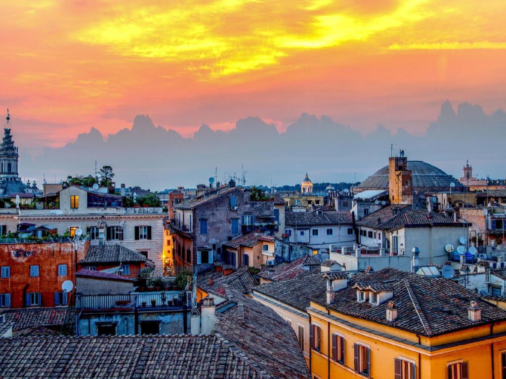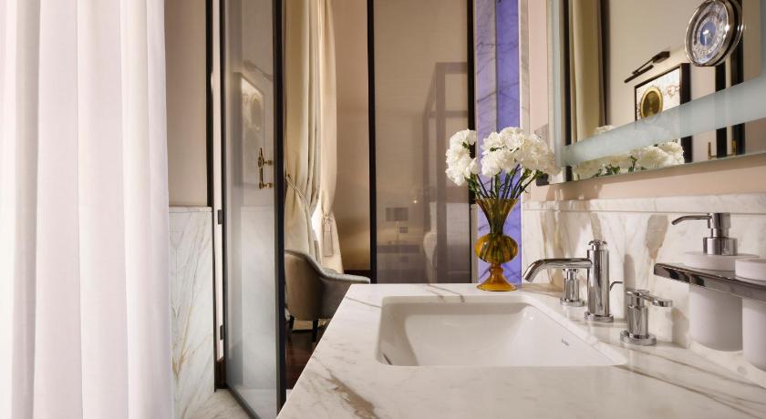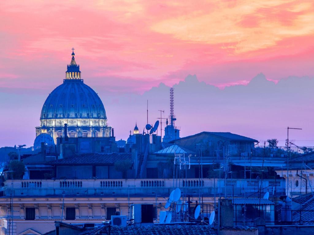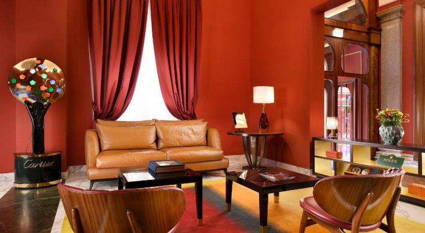 Outside, the view of Corso Vittorio Emanuele II connects guests directly to the rhythm of central Rome.
